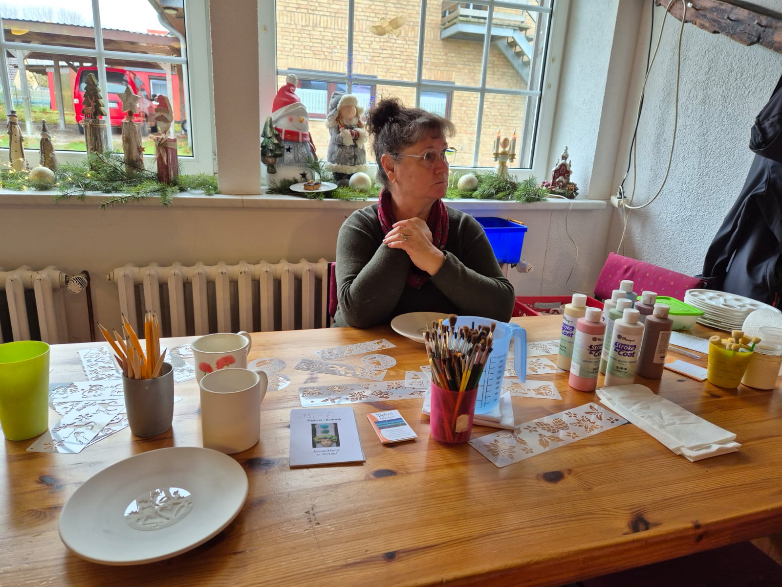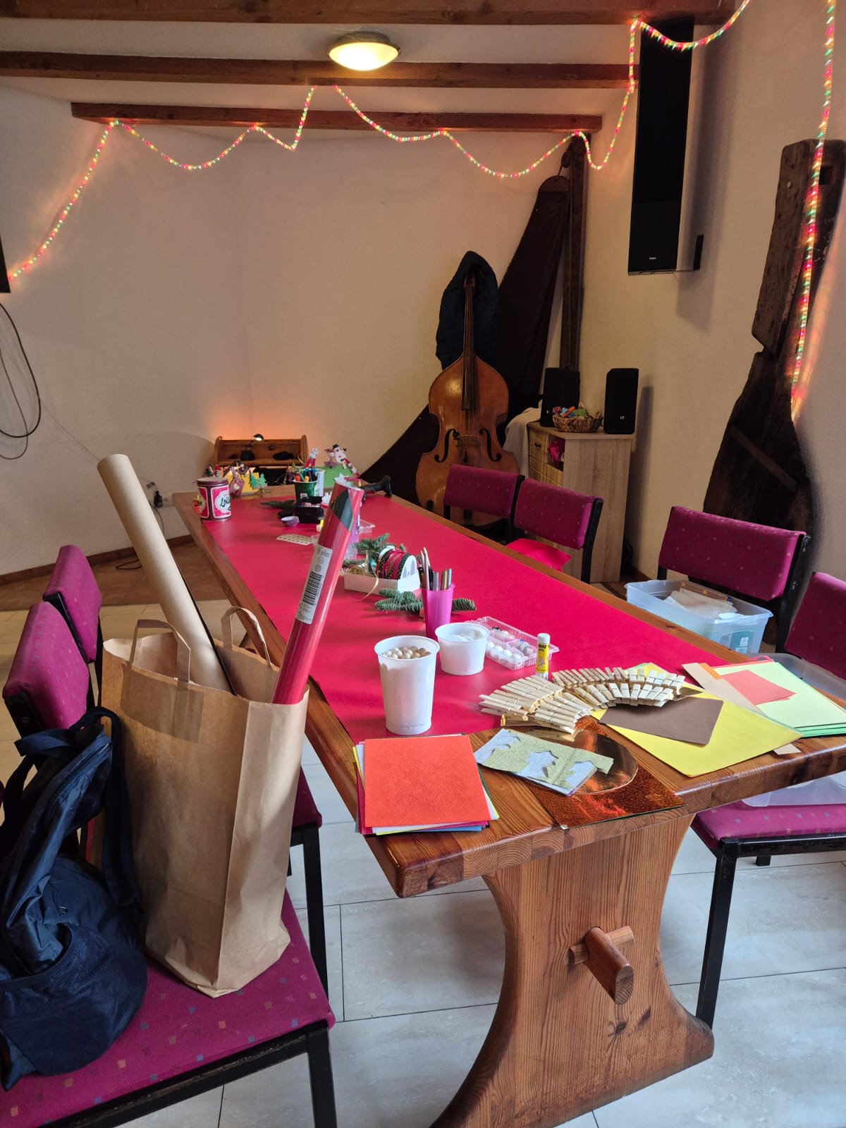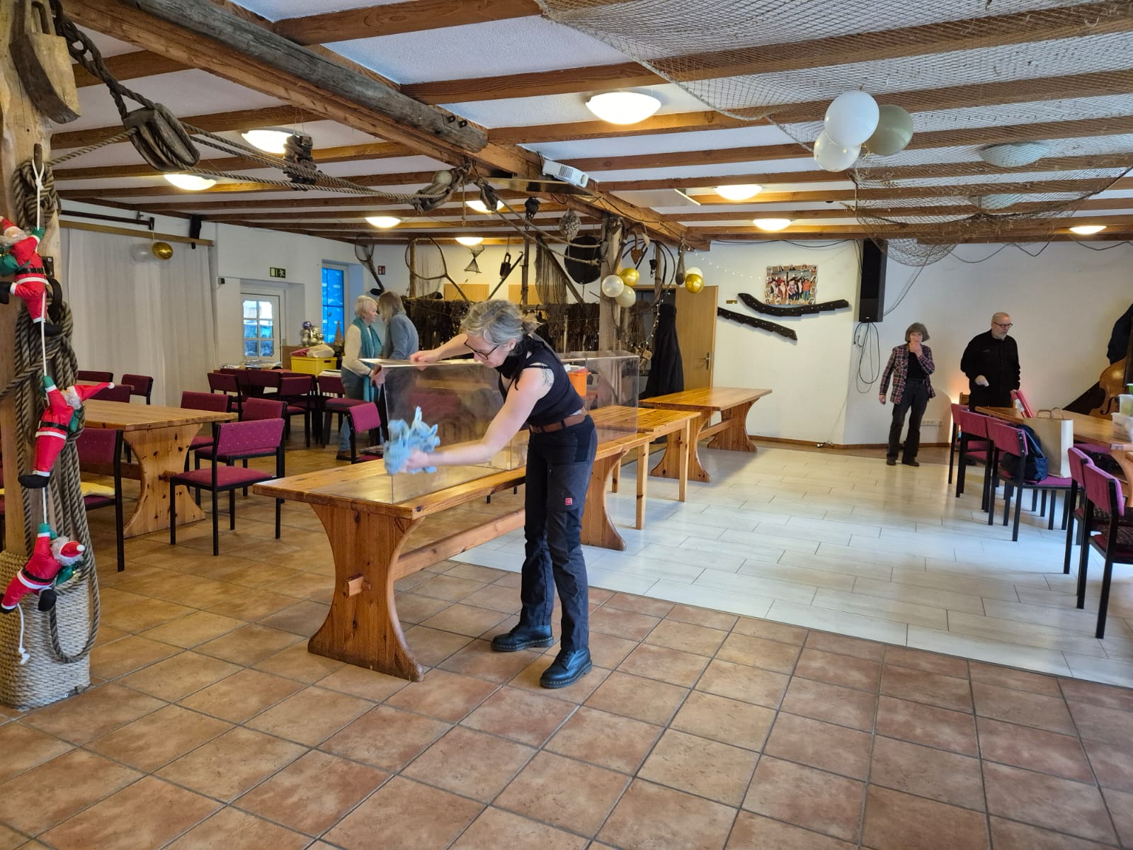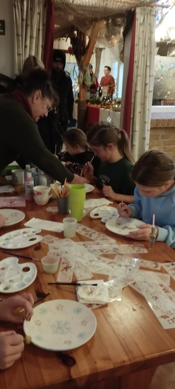 Dieses Jahr hat der Kulturverein bei den Planungen seines mittlerweile traditionellen Adventsmarktes in der Gaststätte „Am alten Hafen“ einen Schwerpunkt auf Selbst-Mach-Angebote für Geschenke an Lieben oder sich selbst gelegt: Es konnten Advents- und Weihnachtskarten aquarelliert oder Sandkerzen und Baumschmuck hergestellt werden, Keramiktassen oder -teller mit Farbe gestaltet und später nach dem Brennen abgeholt oder aber mit Heilsteinen charmante Armbänder kreiert werden. Es war berührend anzusehen, mit wieviel Freude, Liebe und Lust dieses Angebot wahrgenommen und mit welchem Stolz das eigene Werk gezeigt wurde. Dies gilt ebenso für den „Fuhlendorfer Adventsvolkschor“: In Anlehnung an Goethes Osterspanziergang könnte man ausrufen: Nicht „dieses Gewimmel möchte ich sehen“, sondern: „Dieses Singen möchte ich hören“! Aber hört selbst im unteren Videoausschnitt rein. Und hier an dieser Stelle sei auch mit großem Dank festgehalten: Die Band mit ihrer selbst angekündigten „handgemachten Live-Musik aus der musikalischen Mottenkiste“ war grandios und hat die Stimmung im Saal weihnachtlich eingefärbt.